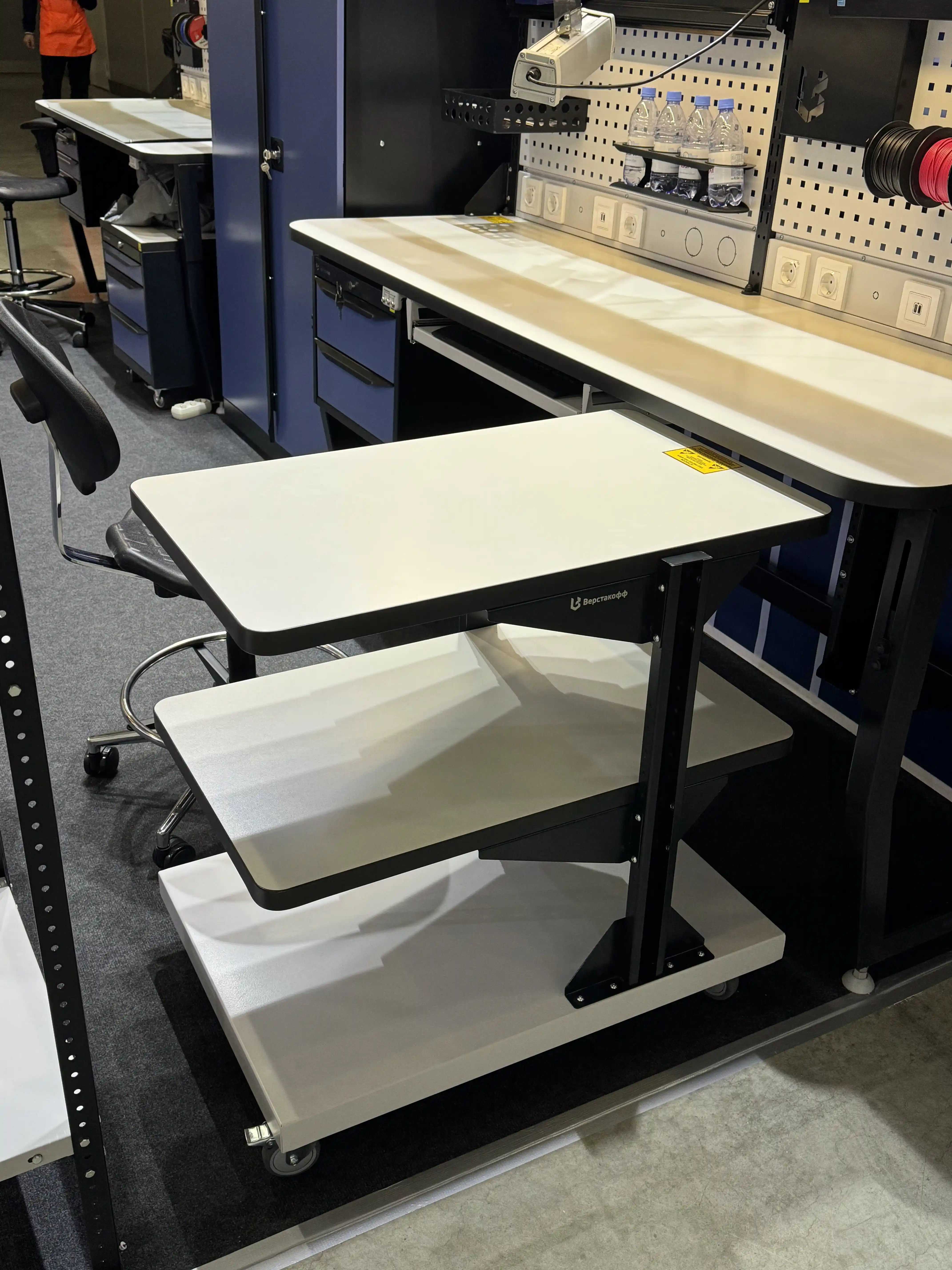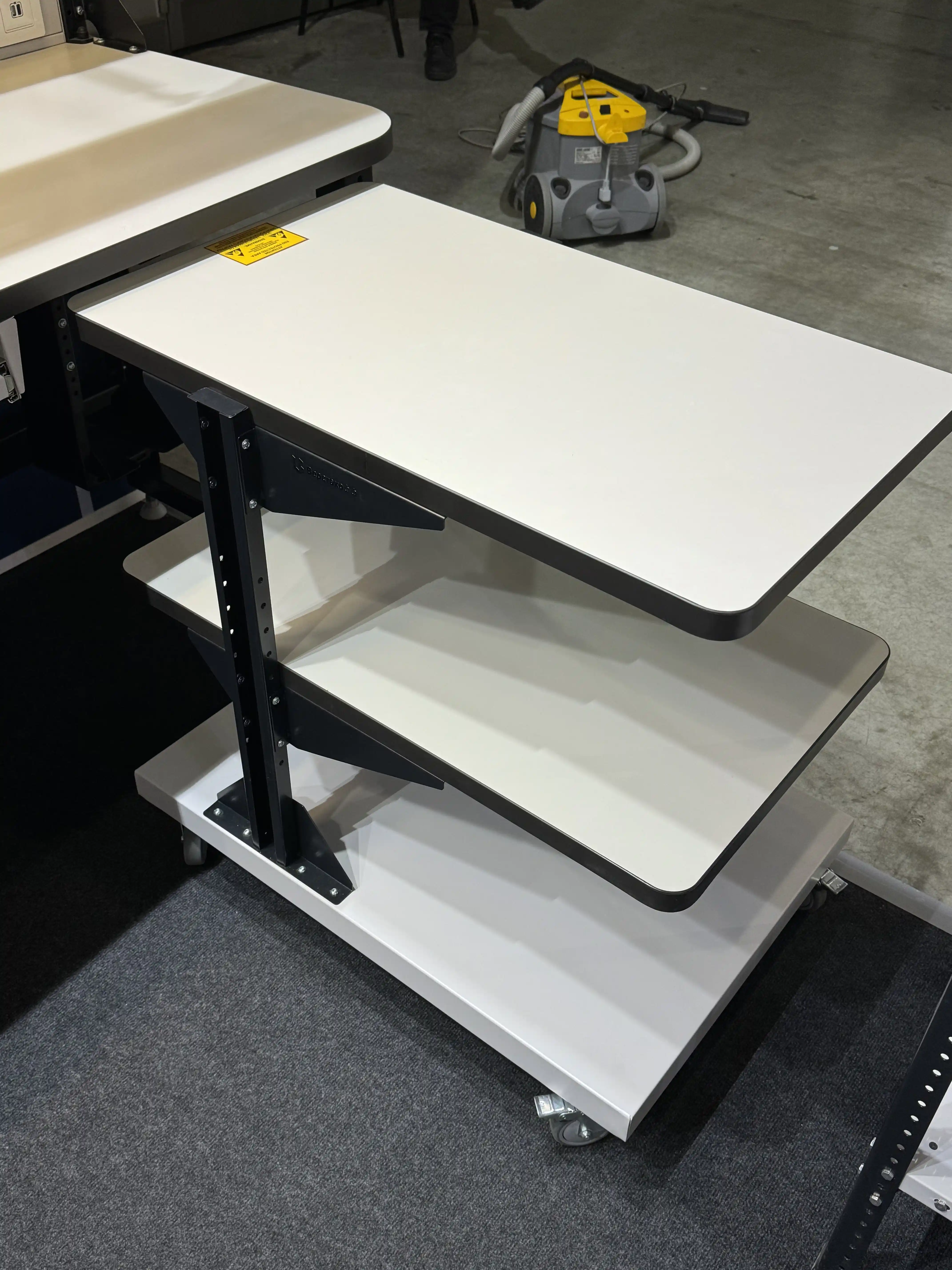Подкатной столик с ESD полками - это мобильная рабочая поверхность с полками, которая имеет специальные ESD свойства.