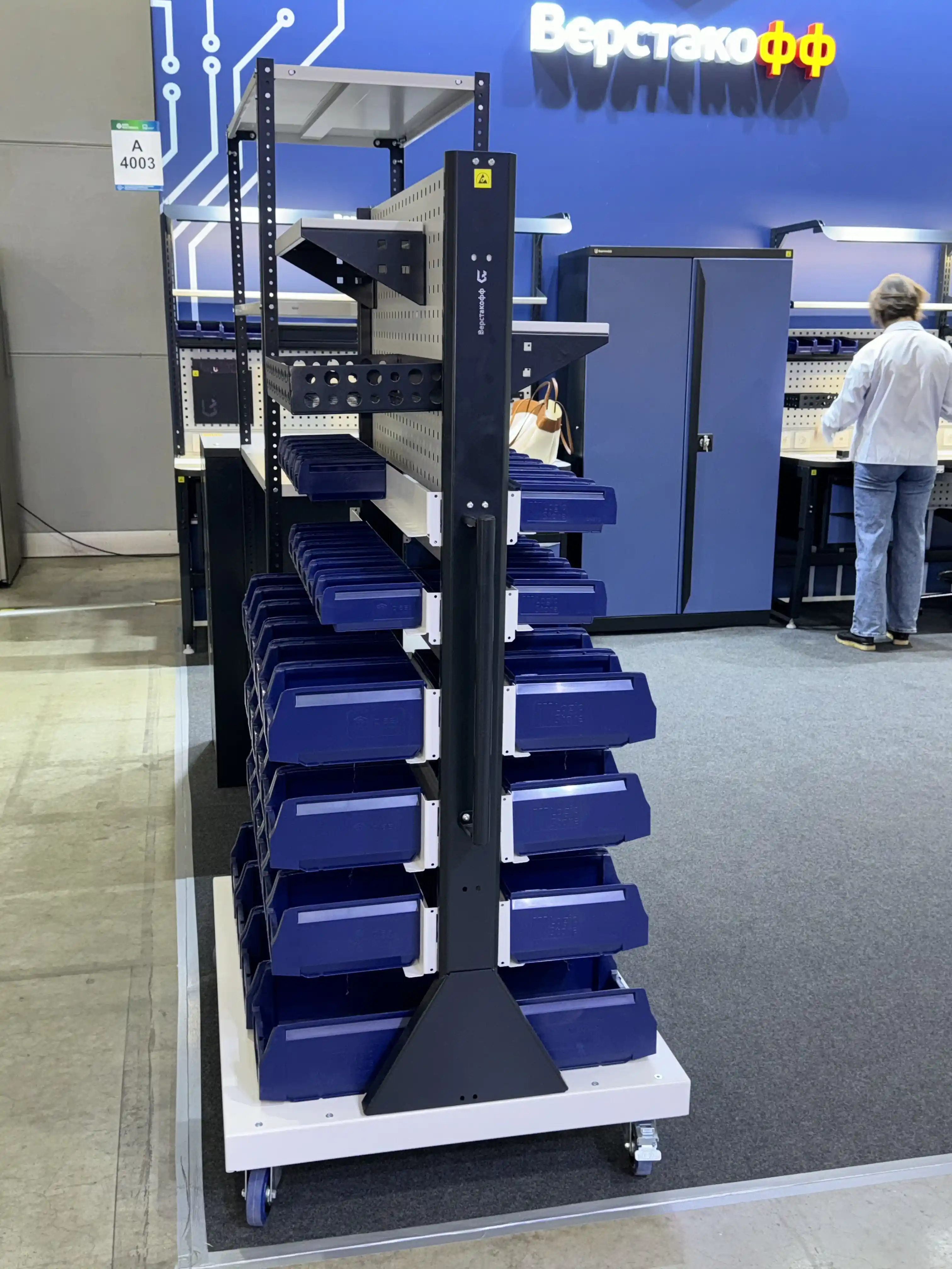 Передвижная стойка SPC 4B.1 (90.36.8) с навесными контейнерами различных размеров — это специализированная конструкция для хранения и организации электронных компонентов и устройств, обеспечивающая защиту от статического электричества и электростатических разрядов.