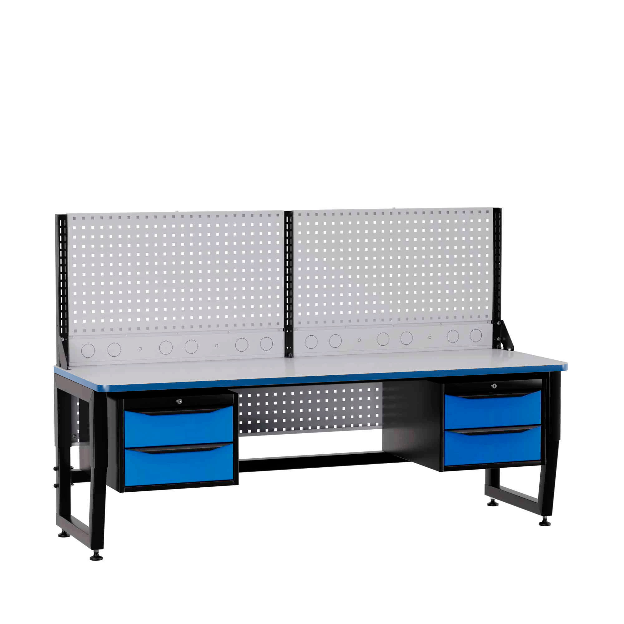 Столы могут быть укомплектованы подвесными тумбами с выдвижными ящиками. Внутренние размеры ящиков: большой ящик (ВхШхГ) — 127х400х508 мм, малый ящик — 52х400х508 мм, с максимальной нагрузкой до 30 кг при равномерном распределении. Также возможна установка экранов, блоков подключения коммуникаций, держателя системного блока и выдвижной полки для клавиатуры, что делает рабочее место максимально функциональным и удобным.