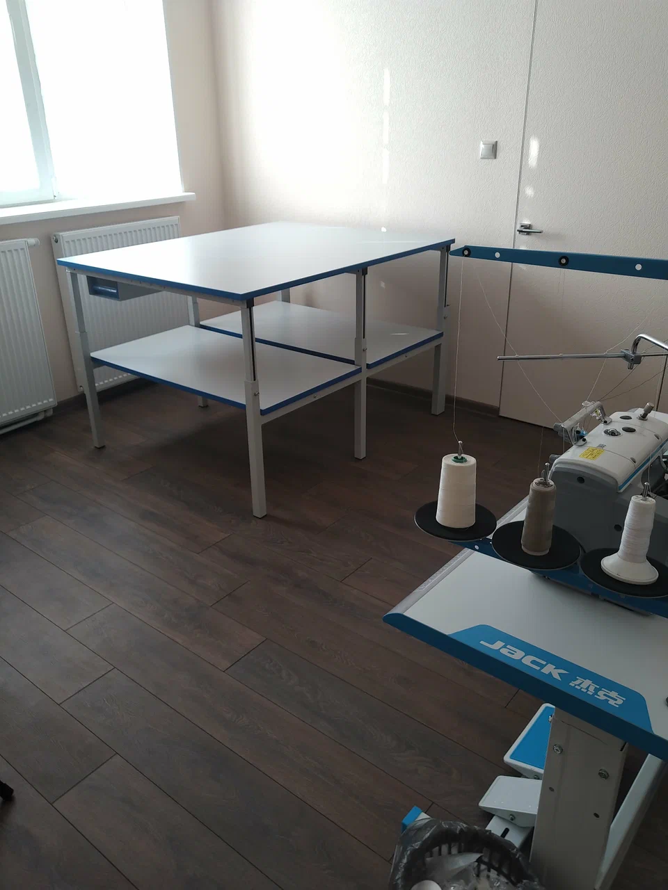 Для хранения и размещения рулонных материалов предусмотрена нижняя полка во всю ширину стола. Раскройный стол СР легко выдерживает нагрузку в 300 кг. Конструкция стола СР имеет регулировку высоты столешницы 650-950 мм., что позволяет установить её на любую удобную Вам высоту, а в последствии , если это необходимо, легко поменять. Столешница и полка изготовлены из ЛДСП толщиной 25 мм. Все рабочие места Gresson серии СР могут быть оборудованы регулируемыми опорами, что позволит нивелировать неровность пола и при необходимости увеличить высоту стола.
