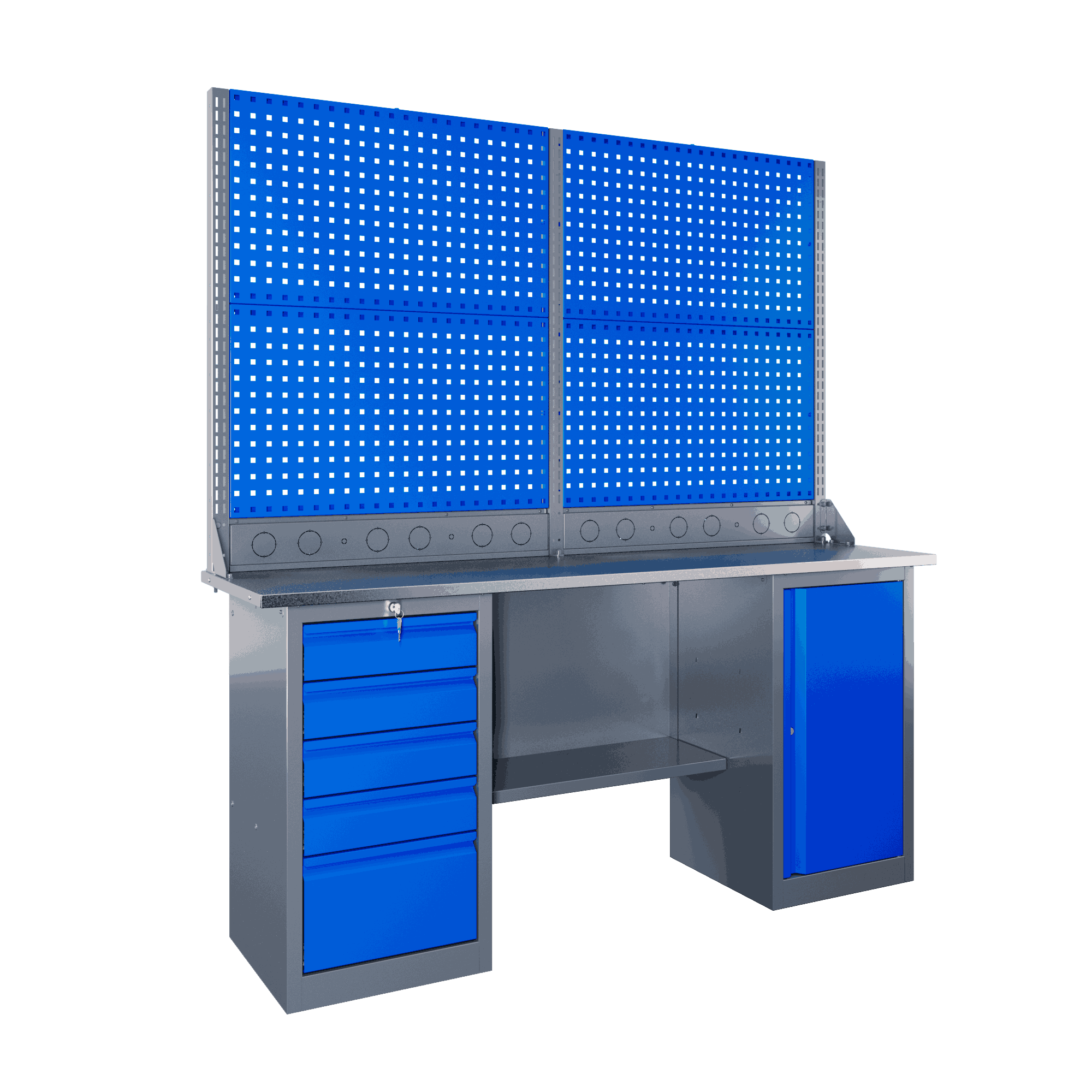 Самые компактные верстаки с глубиной столешницы 500 мм. Благодаря небольшой глубине, такие верстаки легко размещаются в ограниченных пространствах, например, в гаражах, мастерских и тд. Несмотря на компактные размеры, верстаки могут быть оснащены полками, ящиками и держателями для инструментов, что помогает поддерживать порядок и быстро находить нужные предметы.