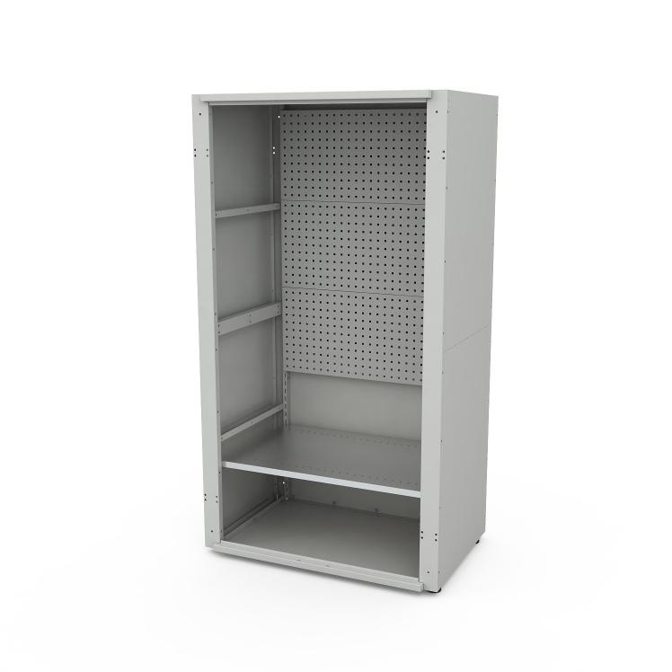- Комплектация: рамы, боковые и задние стенки, полка, перфорированные стенки (3 шт.), металлические двери (2 шт.)